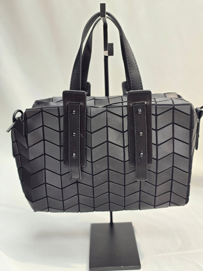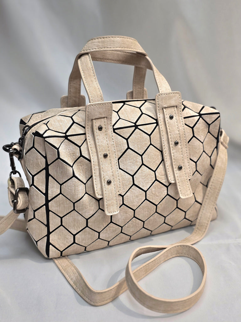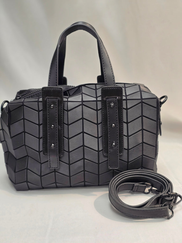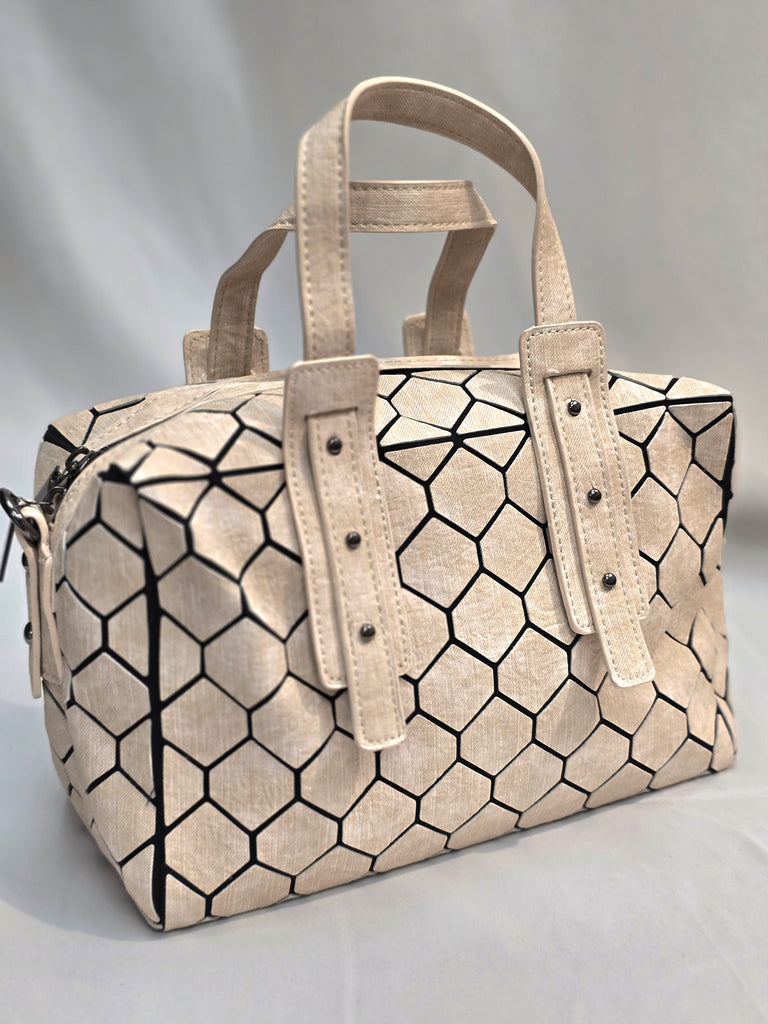 Elevate your look with this stylish geometric handbag, perfect for adding a fun twist to any outfit. Wear it crossbody with the detachable strap for hands-free convenience. Available in sleek matte black or a versatile wheat tan.