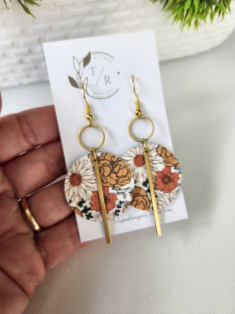 Floral genuine leather and brass dangles