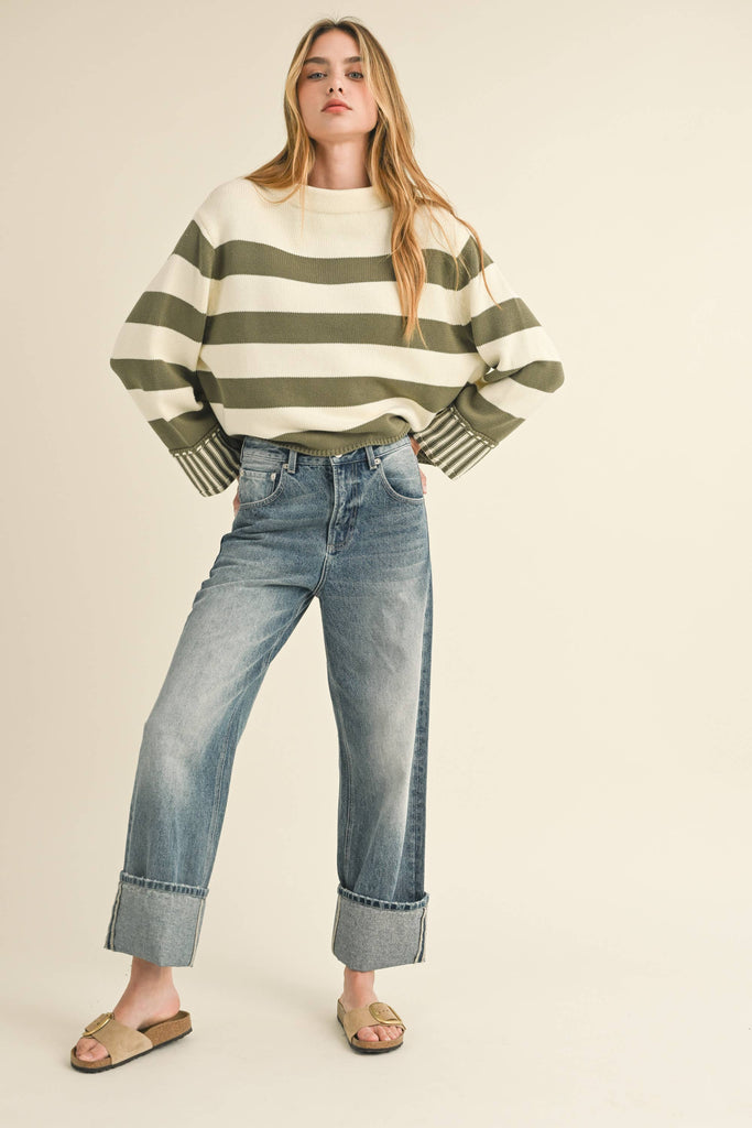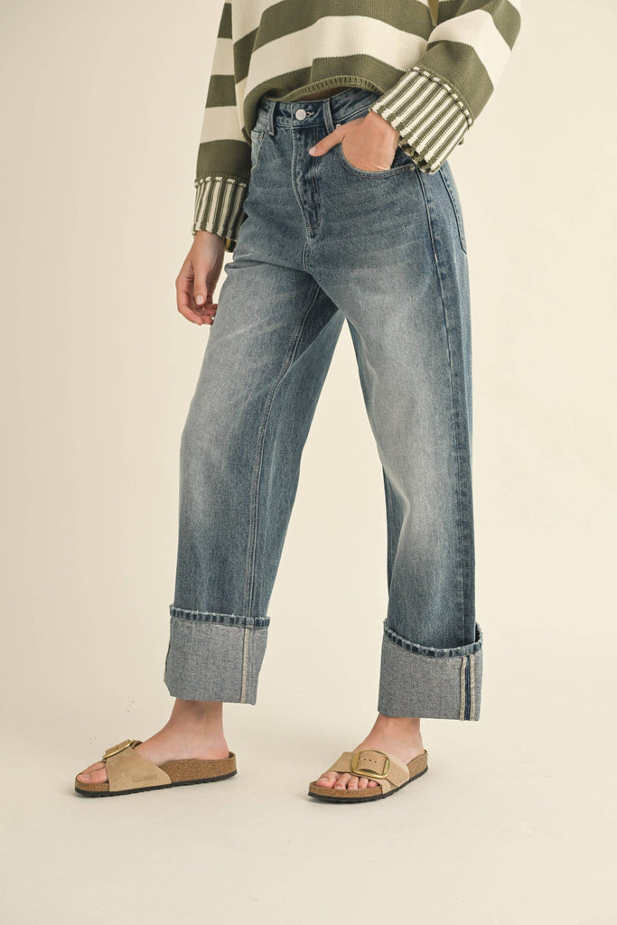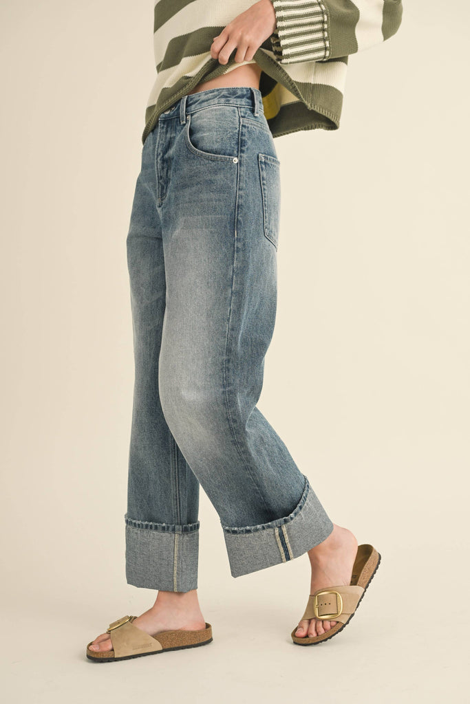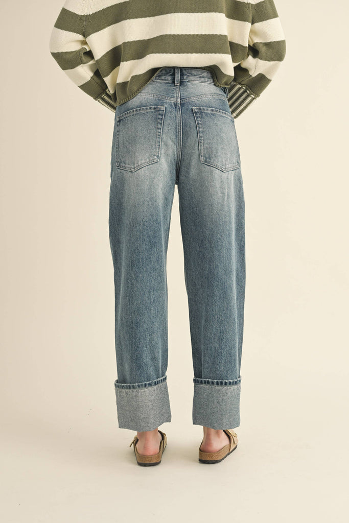 Straight Leg Cuffed Hem Denim Pants
