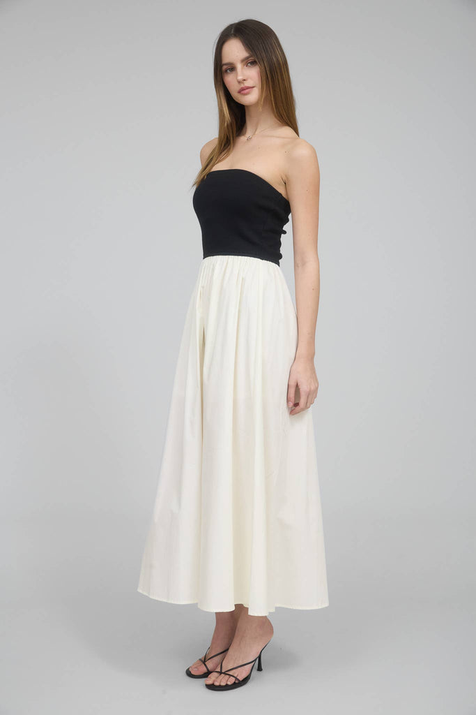 Mix Media Knit Strapless Top Woven Maxi Dress