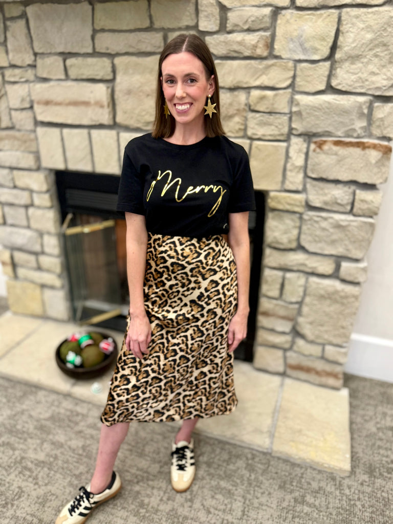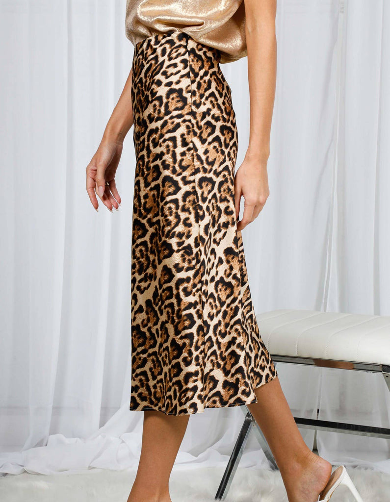 Leopard Printed Satin Skirt
