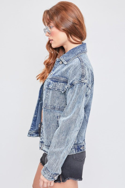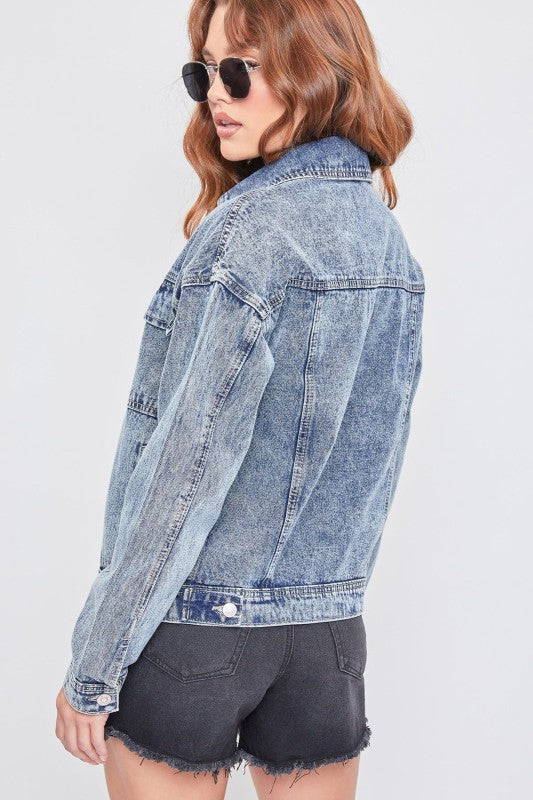 Bring retro style to your wardrobe with our Oversized Utility Denim Jacket. Featuring a slightly oversized fit, unique acid wash, and bold two-flap pockets, this jacket exudes effortless cool. Like a favorite vintage piece, it softens and develops character with wear. Style it with your favorite denim, a cozy sweater, a bucket hat, and sneakers for a complete throwback look.