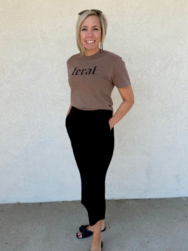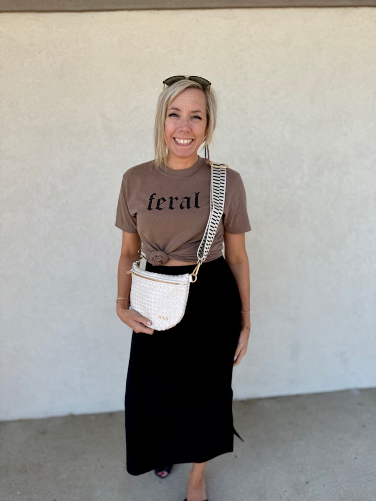 Chic with a hint of rebellion, our "FERAL" T-shirt is a refined take on untamed energy. Made from ultra-soft cotton with a relaxed, flattering fit, it pairs minimalist design with bold personality. Perfect for those who carry a quiet wildness and effortless style wherever they go. 100% cotton