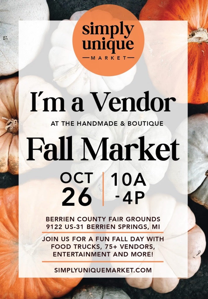 So excited to be a vendor at Simply Unique’s Fall Market this Sunday! Come shop, snack, and enjoy all the fall vibes with 75+ amazing vendors.