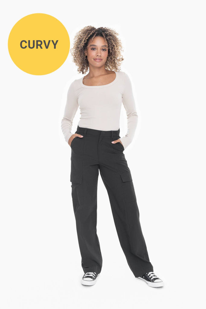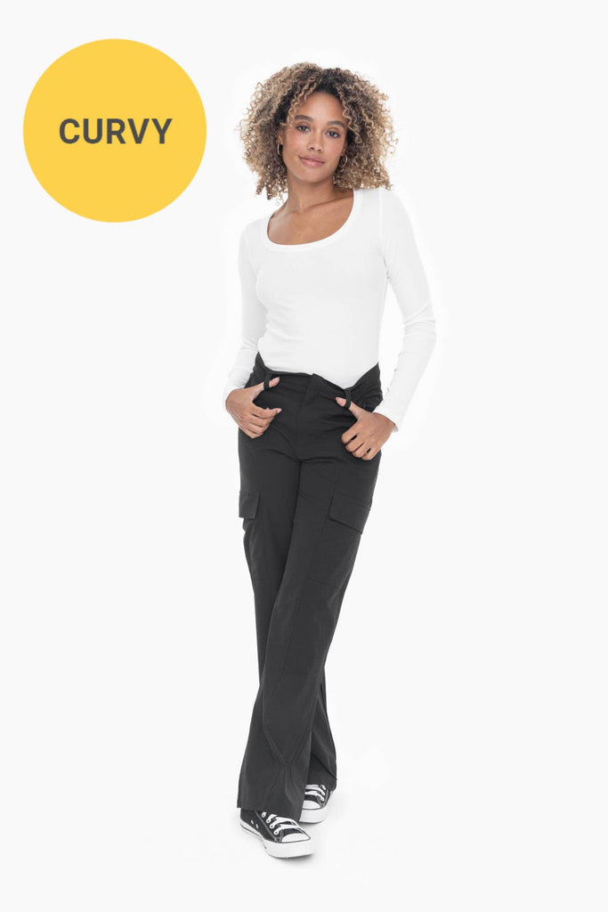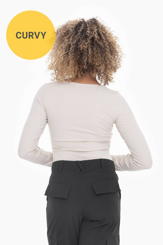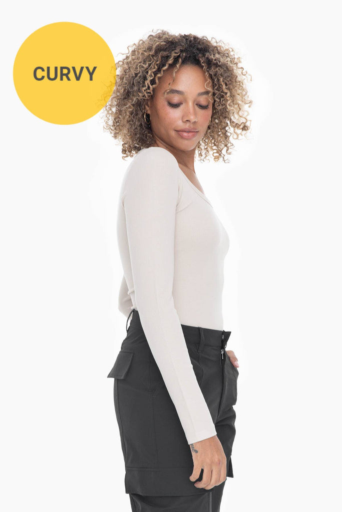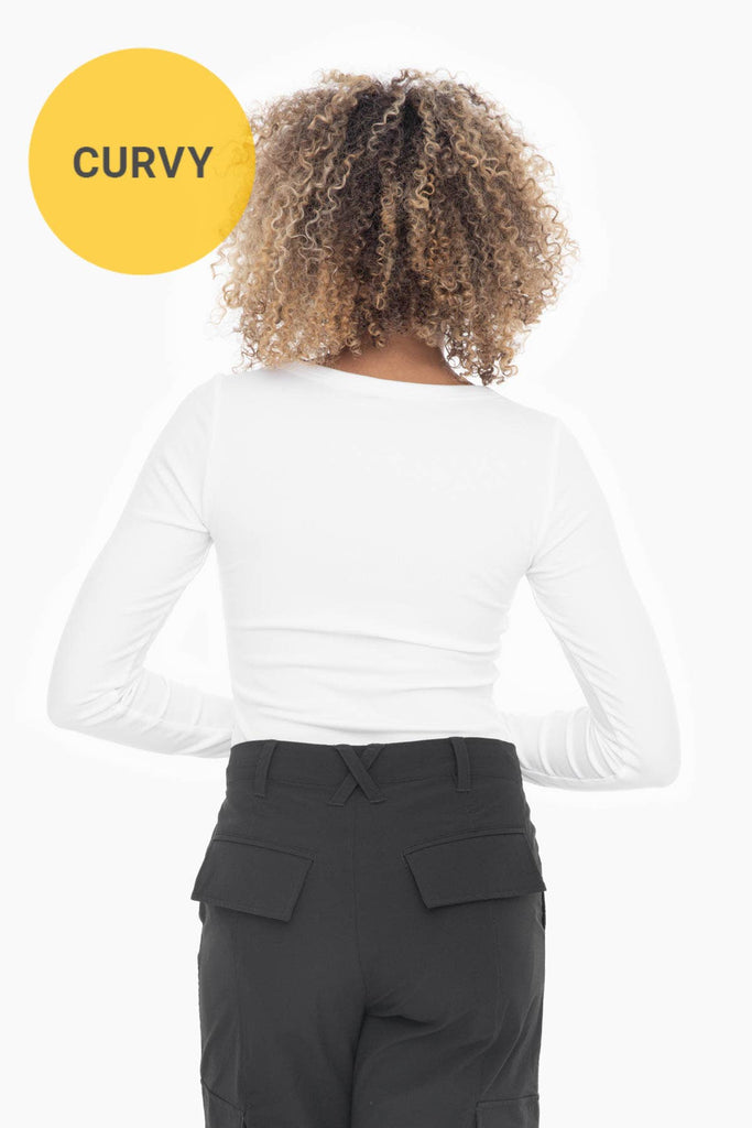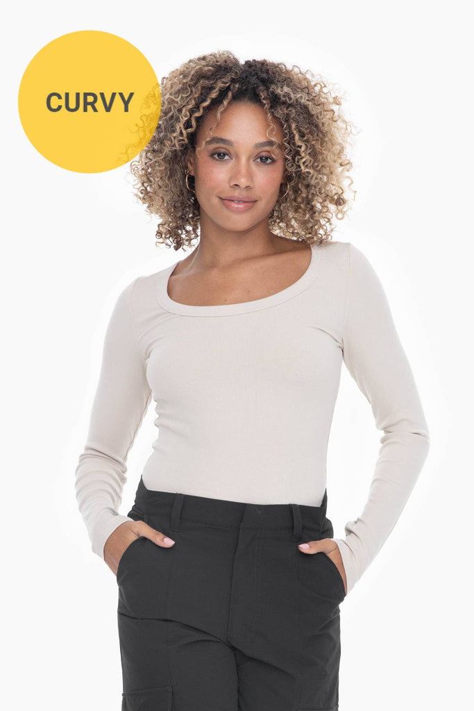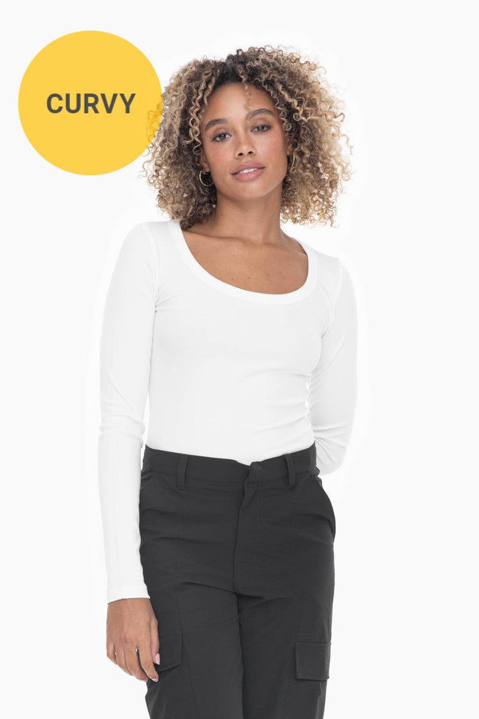 Curvy Slim Fit Scoop Neck Long Sleeve Top
