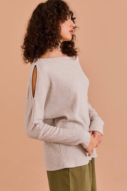 Long Sleeve Boat Neck Shoulder Cut Out Top