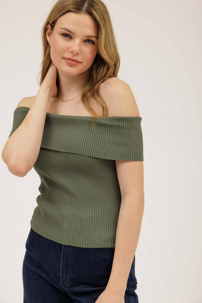 This off-the-shoulder pullover sweater top features a fold-over design with short sleeves for a trendy, laid-back look. Made from a soft sweater knit blend of 70% viscose and 30% polyester, it offers both comfort and style. This top is perfect for layering or wearing on its own for a casual, chic vibe.