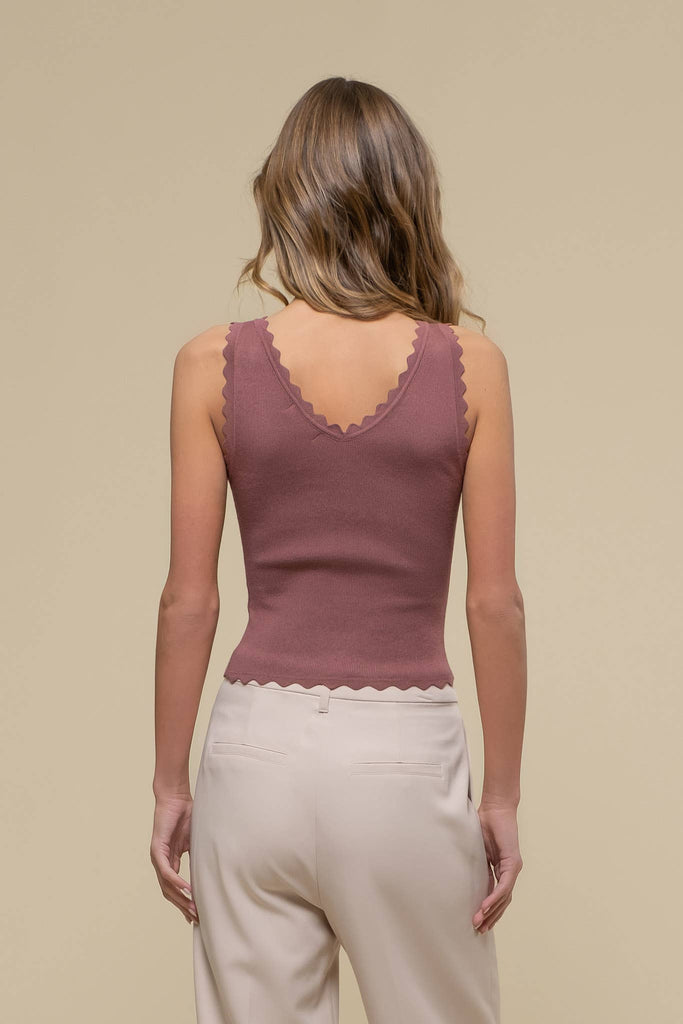 Scallop Edge Sleeveless Sweater Knit Crop Top